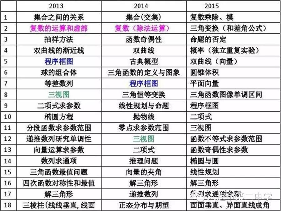 2016届高三数学考纲研究与近三年高考试题分析报告